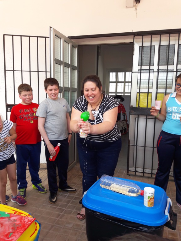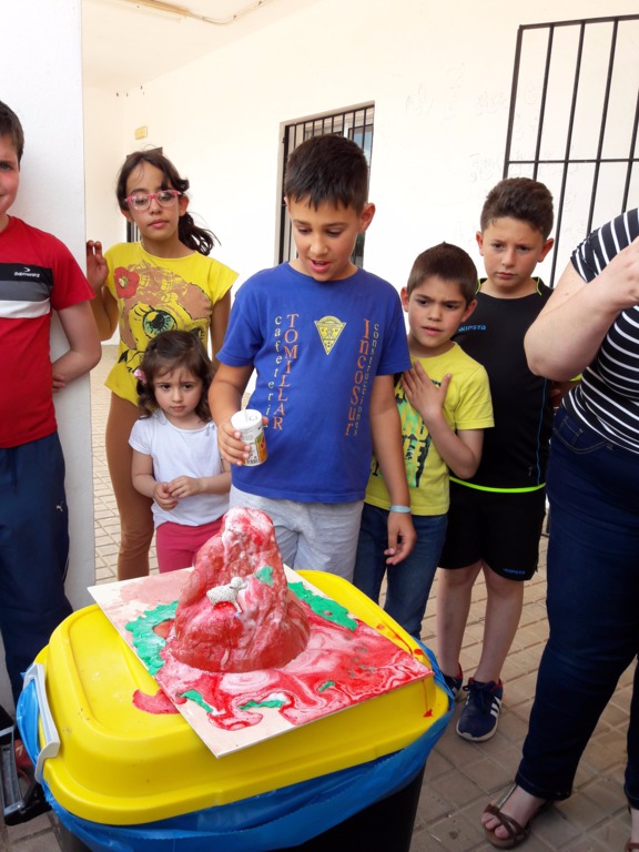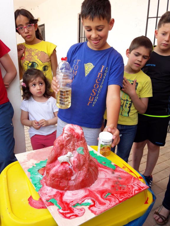 Los últimos experimentos han sido comprobar como es la fuerza a distancia con unos imanes, ver como un globo se puede inflar solito y poner en marcha un volcán. Este último ha sido posible realizarlo gracias a Hugo, que ha realizado este magnífico volcán, y que quiso compartir con todo el alumnado de Hinojales.