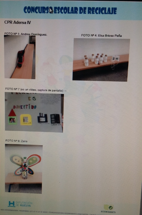 Por la presente OS comunicamos los trabajos seleccionados como finalistas para asistir a la entrega de Premios del Concurso Escolar "Reciclando la